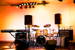 ドラムセットなど本格バンド機材を始め、プロジェクター・マイクや控え室、照明設備など、パーティー・イベントに必要なあらゆる設備が揃っております。